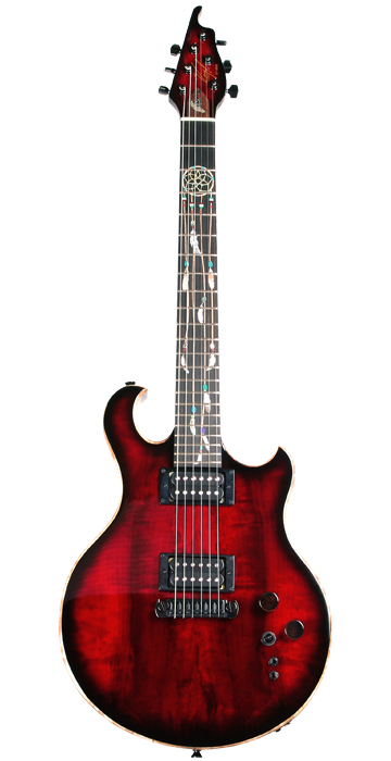 Body: Drop-top; African Mahogany/Redwood sub-top/ Myrtlewood top